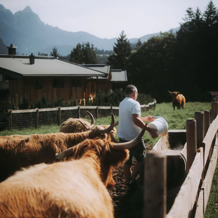Unser Wohlfühlort ist vielmehr als "nur" ein Urlaubsort. Eine Kombination aus Farm & Hotel, voller Persönlichkeit, echten Menschen und Geschichten. Es ist ein historischer Bauernhof, der heute ein 4-Sterne-Farmhotel über Fieberbrunn ist und das bereits in 5. Generation.