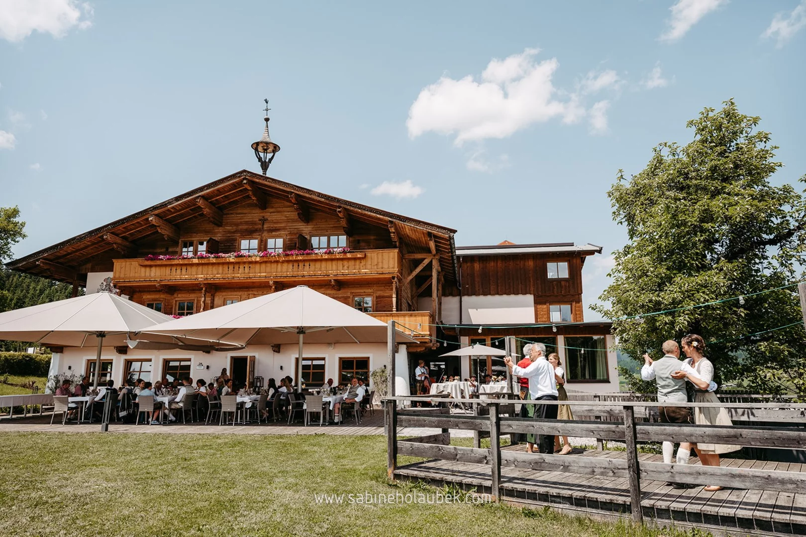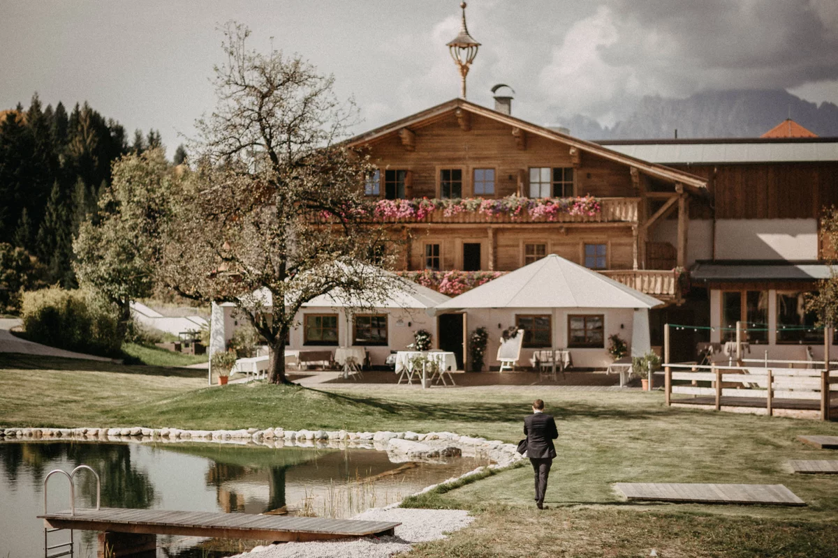 Heiraten Sie am Naturbadeteich, feiern Sie auf der Seeterrasse und genießen Sie einen majestätischen Ausblick auf die Kitzbüheler Alpen.