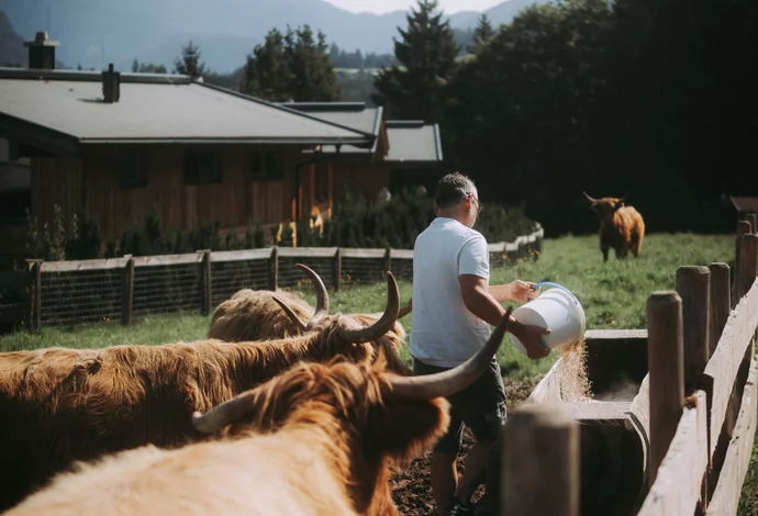 Lernen Sie unser Farm- & Hotelleben kennen - 5% sichern. Gönnen Sie sich 2 Nächte Auszeit und entspannen Sie gemeinsam im ersten Farmhotel der Kitzbüheler Alpen. Hochlandrinder streicheln, Hoftouren erleben und trotzdem den Luxus eines familiengeführten Hotels mit prämierter Kulinarik genießen.