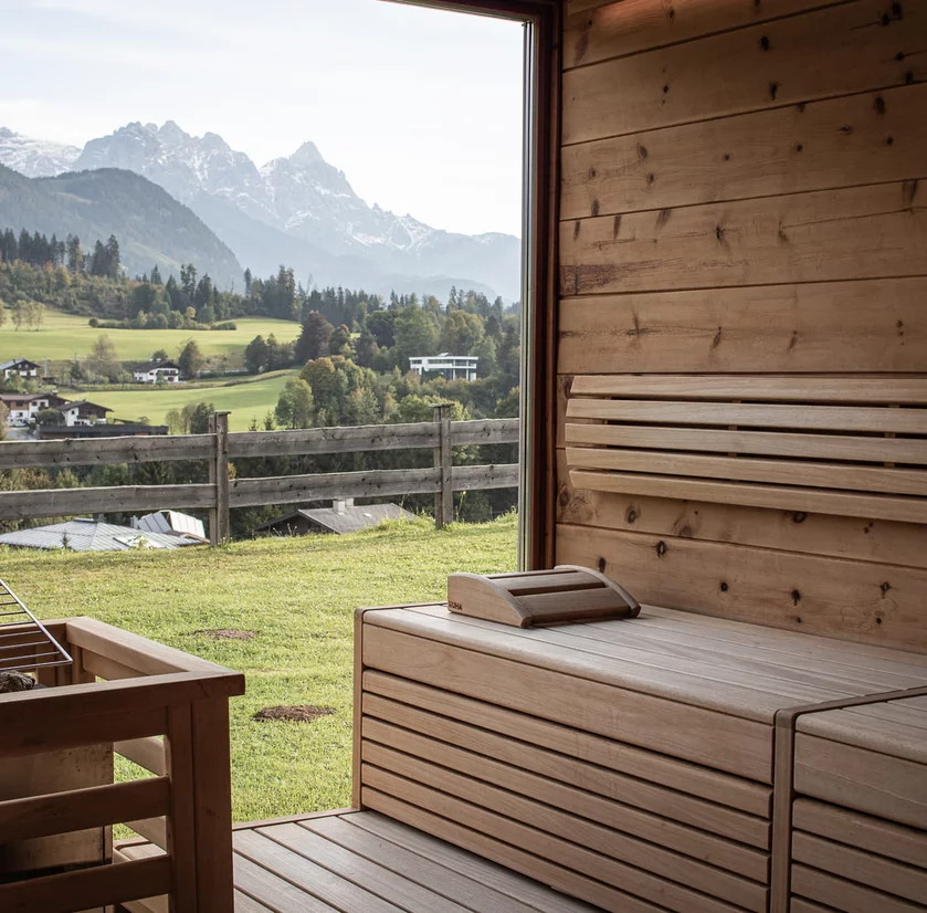 - Wellnesstasche: Kuschelige Bademäntel und Saunatücher finden Sie auf Ihrem Zimmer oder in Ihrem Chalet.