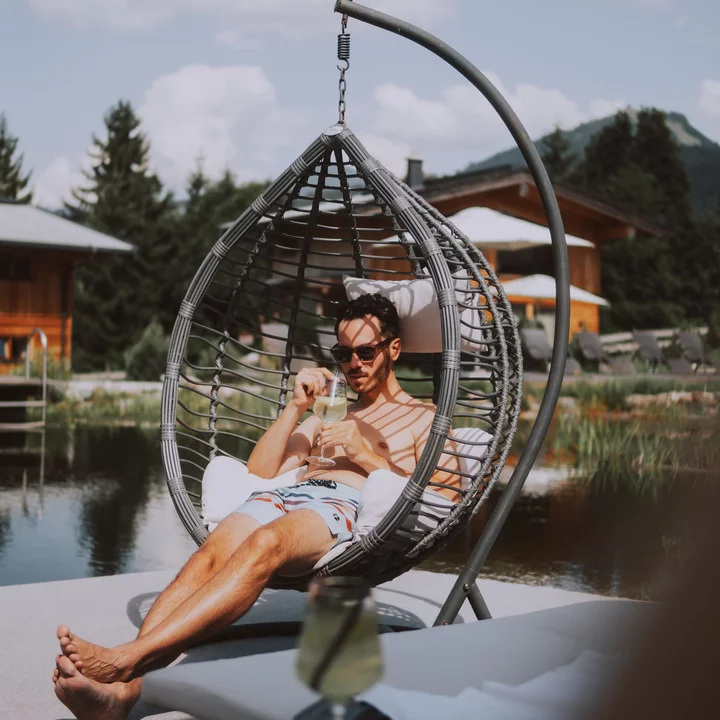 Bei wohliger Wärme die Seele baumeln lassen, eine entspannte Runde im Naturbadeteich drehen oder den Alltag bei einem guten Buch vergessen. In unserer Wellnessoase kommen Sie völlig zur Ruhe.